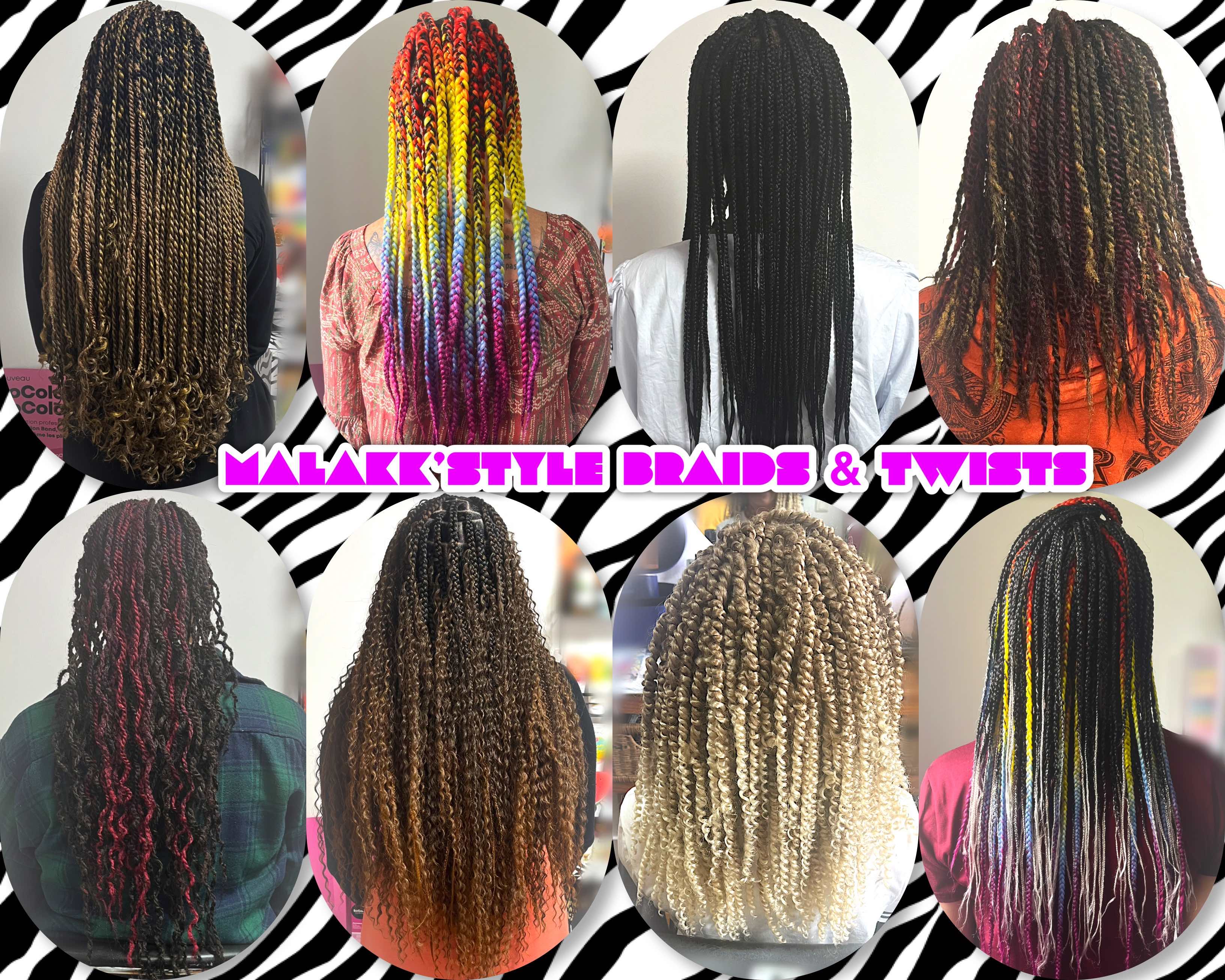 BOX BRAIDS, VANILLES, DEEP WAVE BRAIDS... TOTAL C 140€ ML 180€ L 220€ XL 300€ PARTIEL Dessus Tête C 75€ ML 90€ L 110€ XL 150€ PARTIEL 3/4 Tête C 95€ ML 115€ L 135€ XL 170€