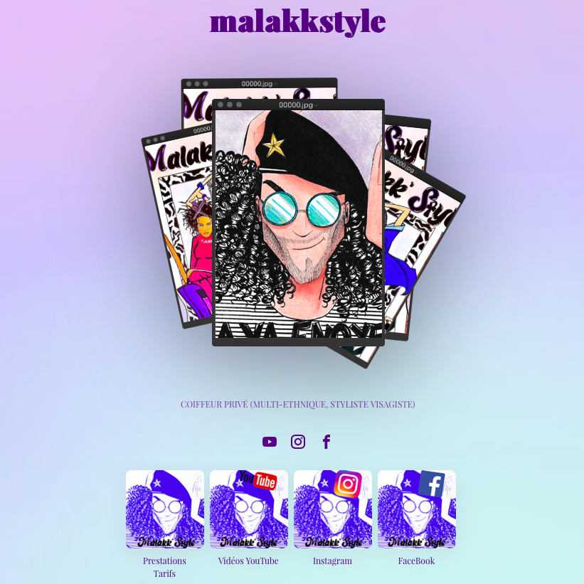 Site Préstations/Tarifs, Vidéos YouTube, Instagram, FaceBook